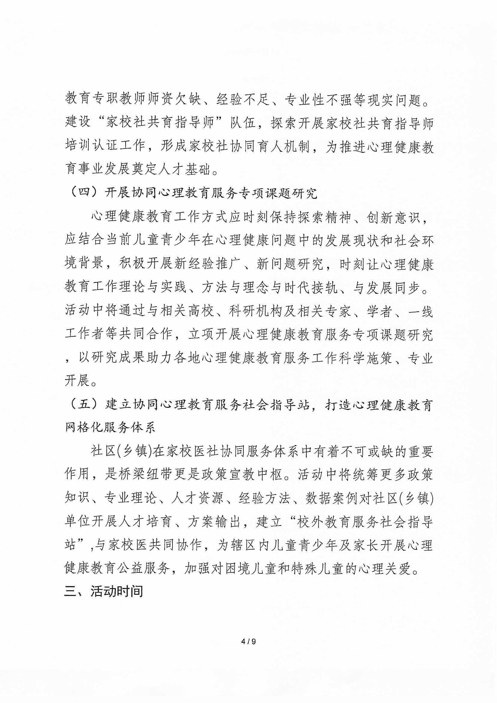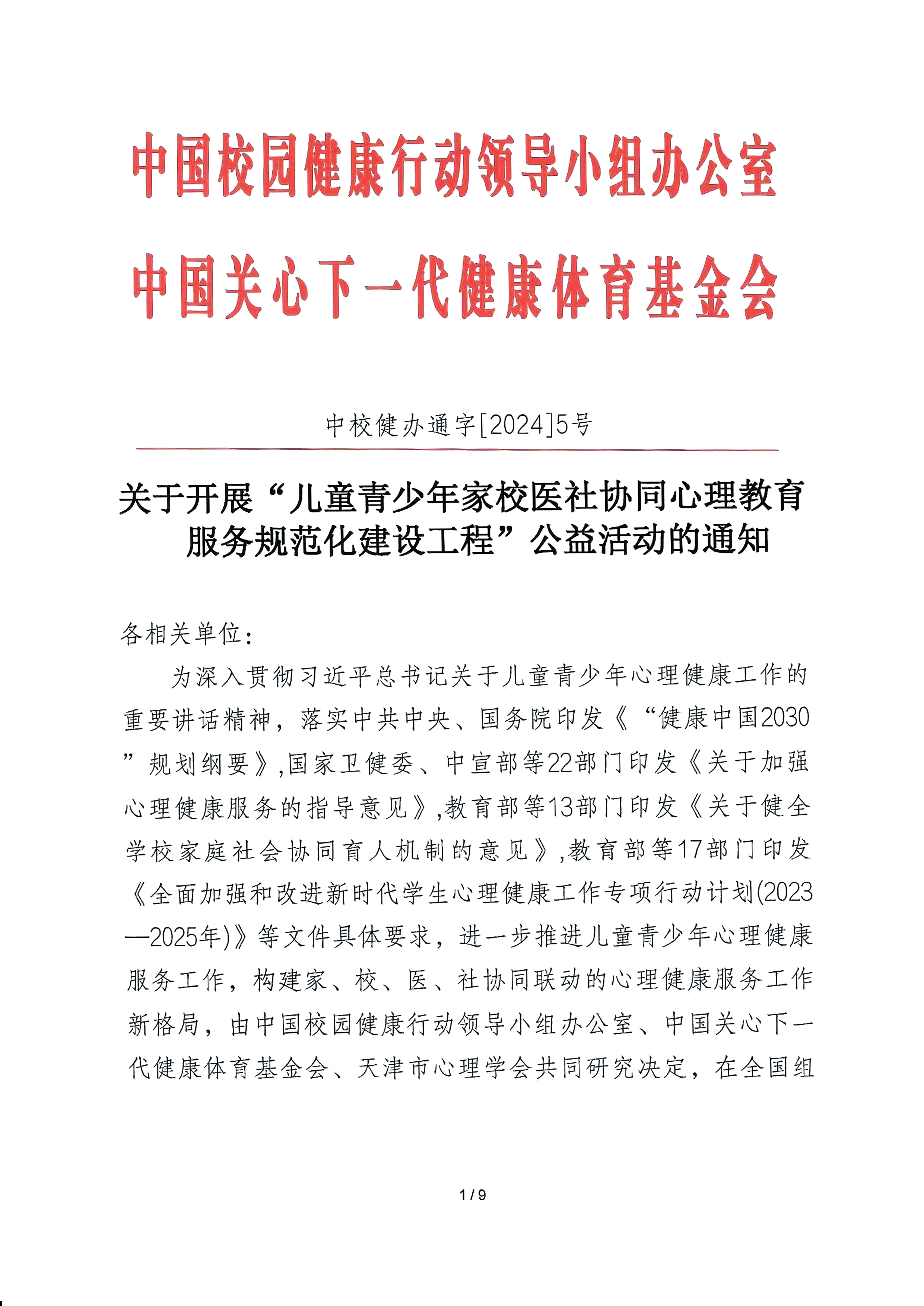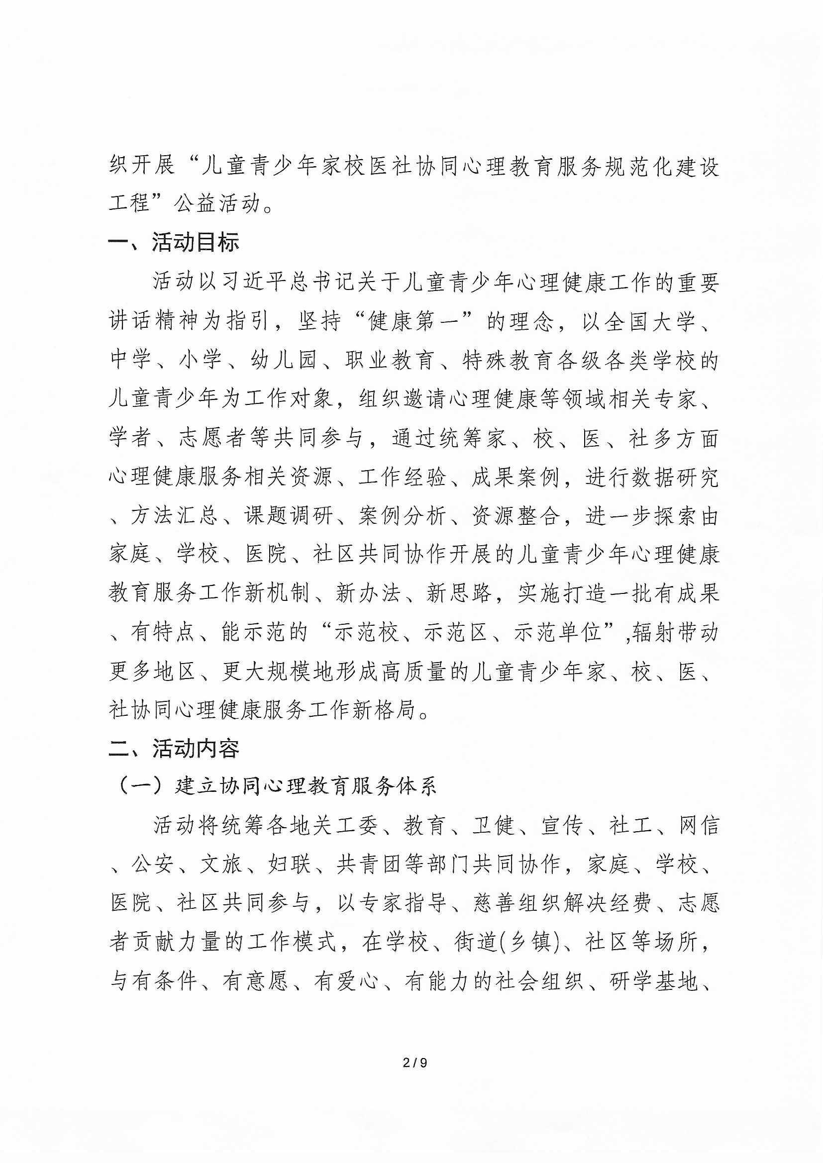 关于开展“儿童青少年家校医社协同心理教育服务规范化建设工程”公益活动的通知