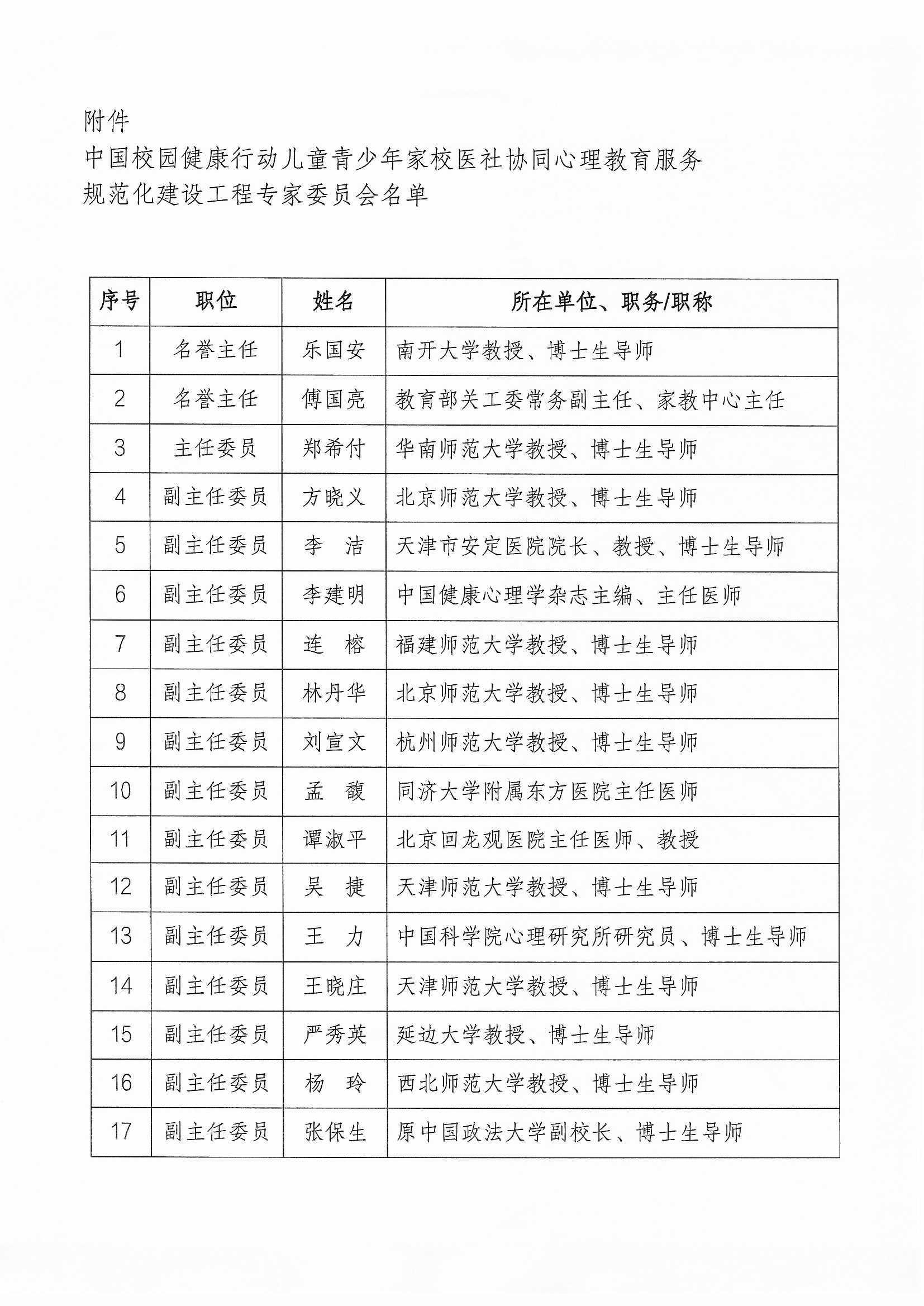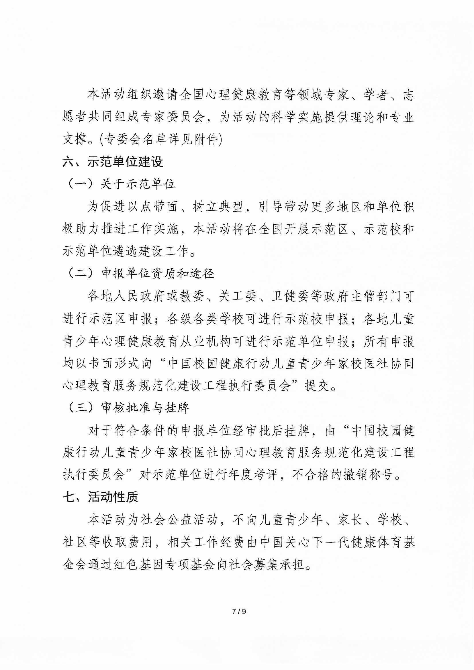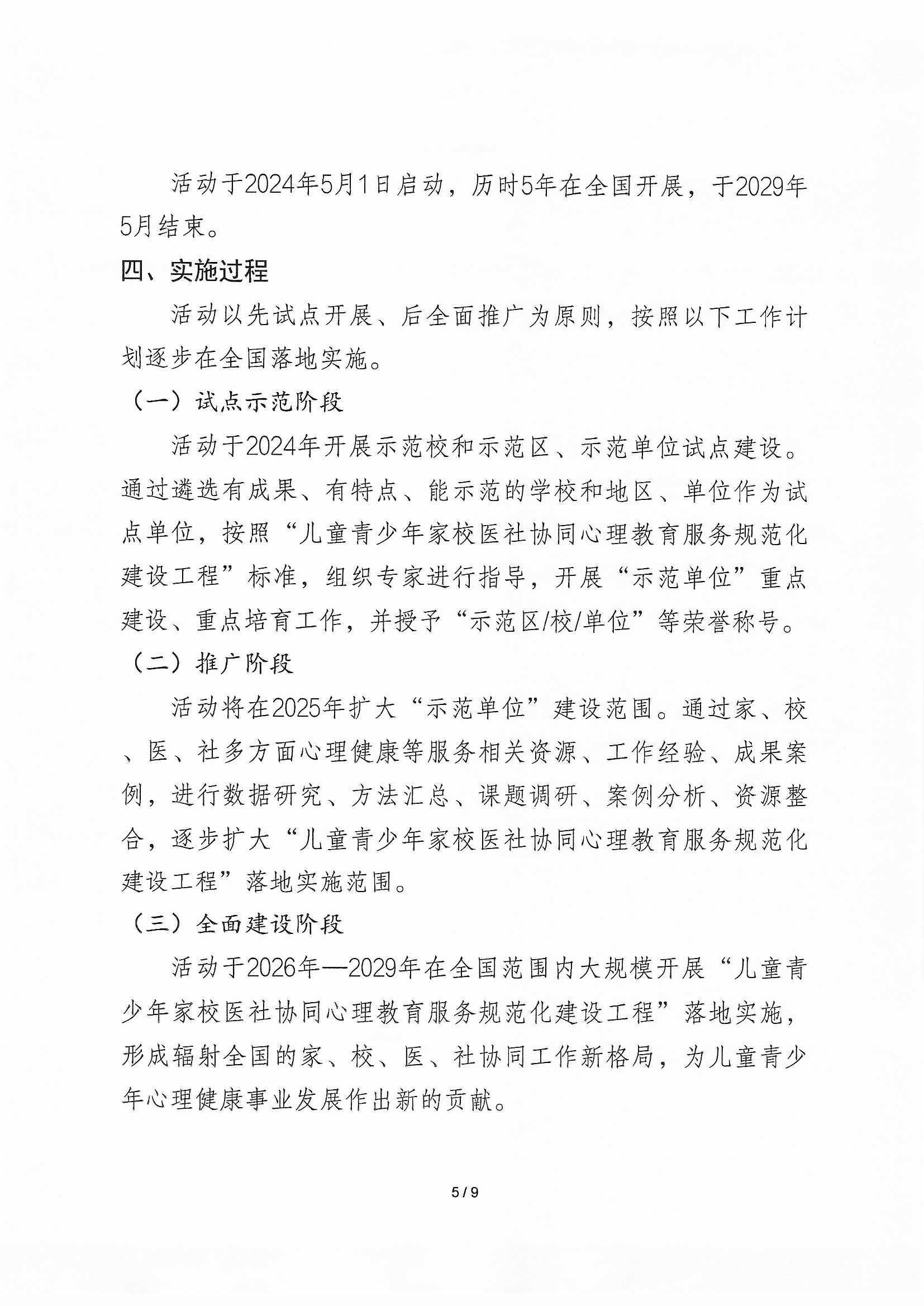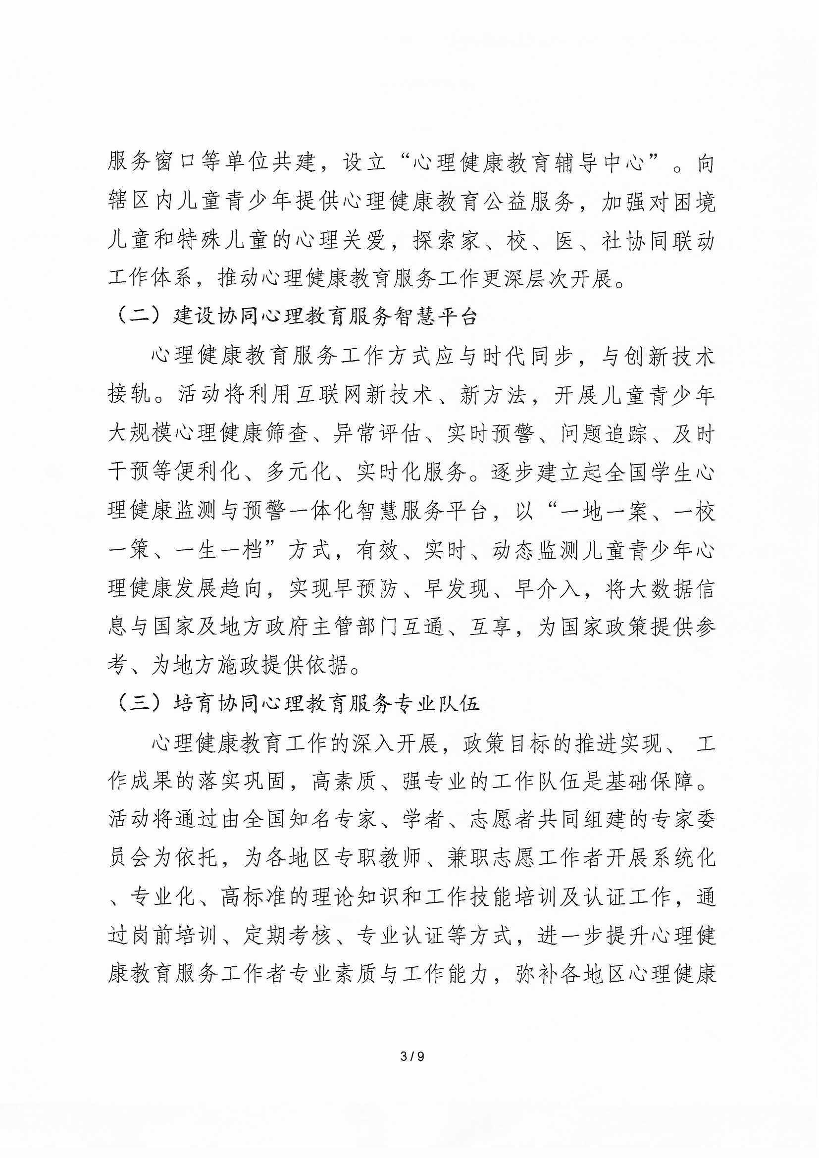 关于开展“儿童青少年家校医社协同心理教育服务规范化建设工程”公益活动的通知