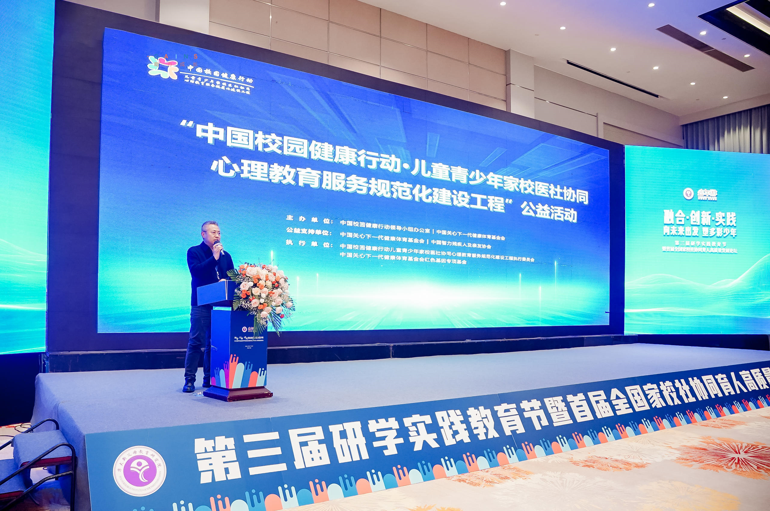 2024年10月24日上午,第三届研学实践教育节暨首届全国家校社协同育人高质量发展论坛在杭州太虚湖隆重开幕。此次论坛汇聚了来自全国各地的校长、专家及嘉宾共计300余人,共同探讨家校社协同育人的新路径与新模式。中国校园健康行动儿童青少年家校医社协同心理教育服务规范化建设工程(以下简称“示范工程”)执行委员会执行主任何万银受邀出席,并发表了题为《示范工程助力家校社协同育人发展》的主题演讲。
